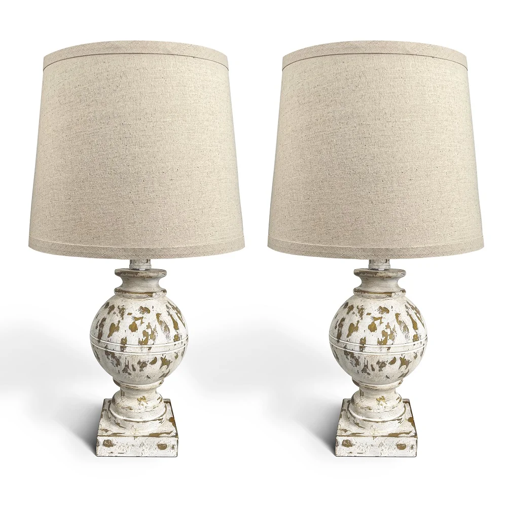 [Exquisite Design]: Crafted from resin coated with distressed white finish, the entire lamp body showcases it a unique vintage-touch texture.