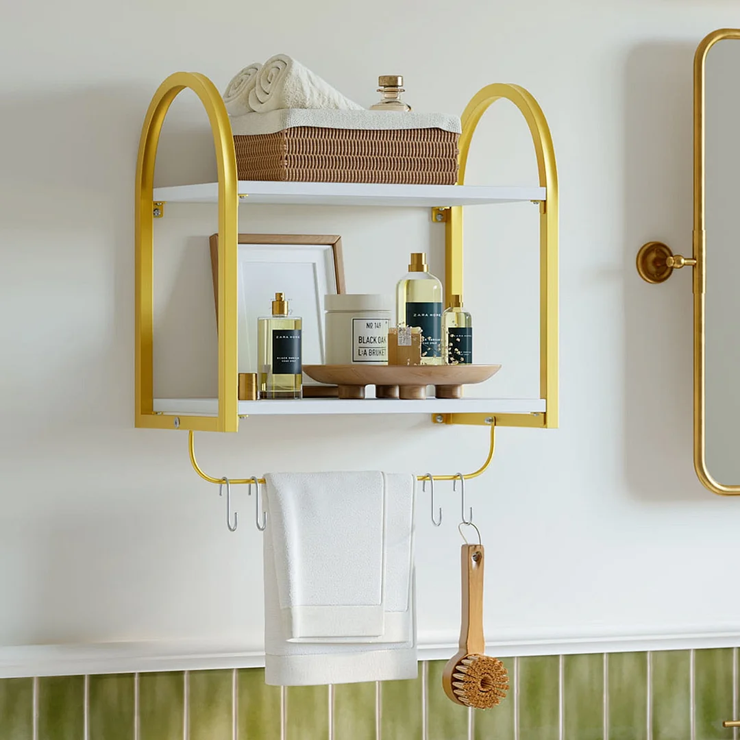 Organized Life: Featuring 2 tiers, hooks and a towel bar, this shelf is perfect for organizing your belongings. Whether it's bathroom essentials, kitchenware, books or decorative items, this shelf helps keep your living space neat, organized and stylish.