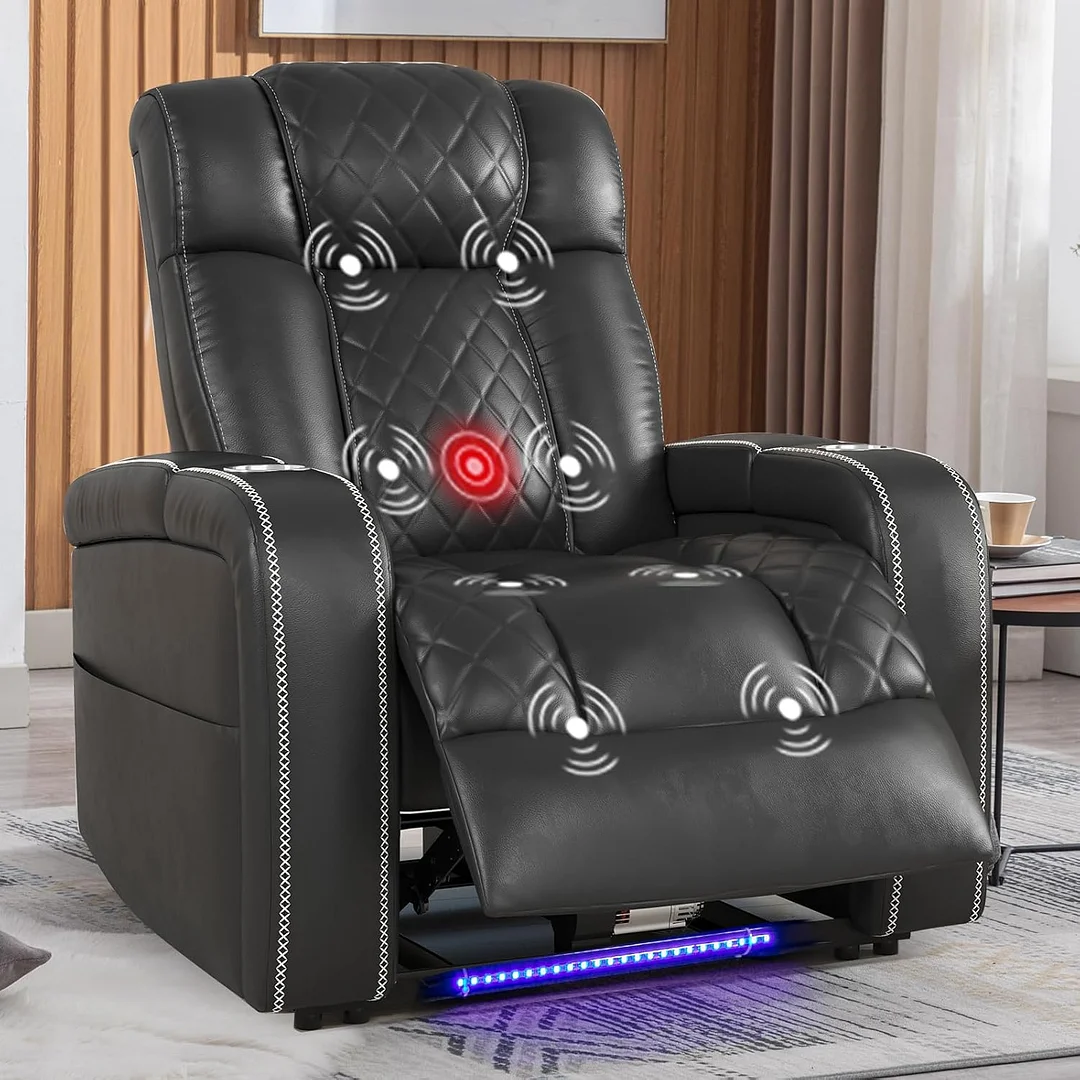 Bestier 34 in. Black Leather Suede Power Recliner Chair with 8-Vibration Massage Point Zero Gravity Recliner with LED and USB
