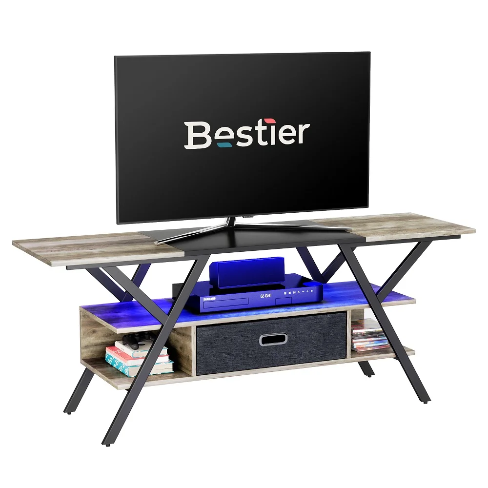 Bestier 55 inch Industrial TV Stand with LED Lights