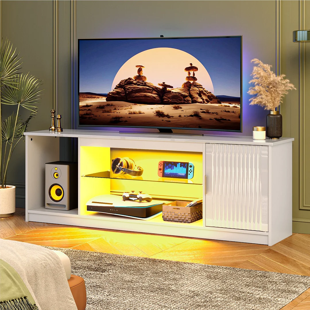 【Colorful Lights, Endless Joy】: Enjoy the joy and wonder brought by our TV stand with LED light strips as it brightens up your home and infuses it with warmth and happiness. It's not just a piece of furniture; it's a magical addition that creates cherished memories for you and your family. Upgrade your home entertainment today and bask in the enchantment of our captivating TV stand!