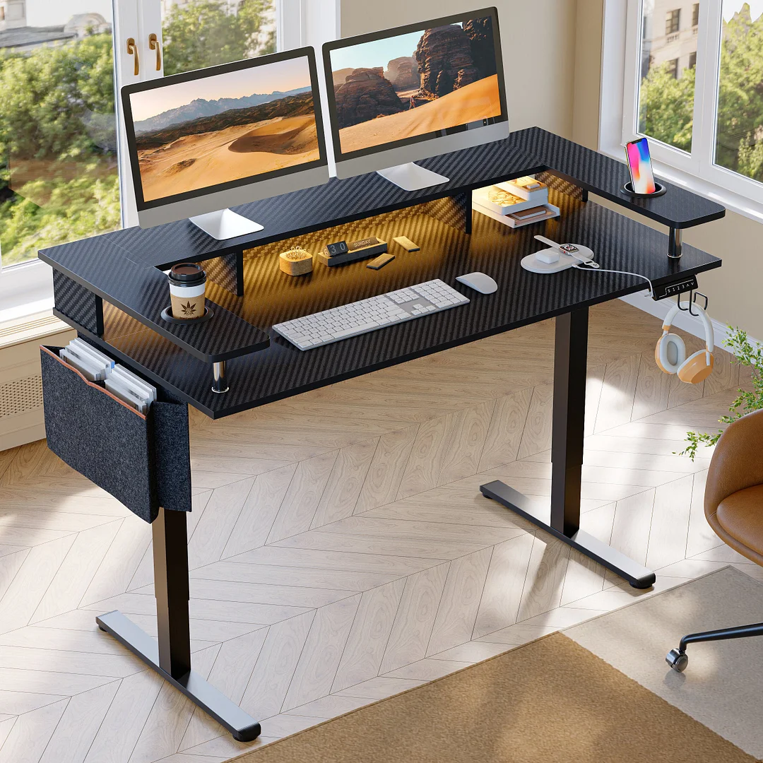 The Bestier electric standing desk, equipped with a USB charging port, is ideal for various office needs.The stand up computer desk can easily adjust the height from 28.3''to 46.5'' to meet your needs of sitting and standing , which can help relieve back and neck pain and reduce your fatigue.The pre-memory feature allows you to save your three preferred height settings and switch between them effortlessly. The lift-up desk is powered by a quiet motor that operates at less than 55db, ensuring a peaceful work environment. The spacious 58"x 26"desktop provides ample space for monitors, keyboards, a mouse, and a small printer. Use this ergonomic desk to maintain a healthy balance of sitting and standing throughout your workday.