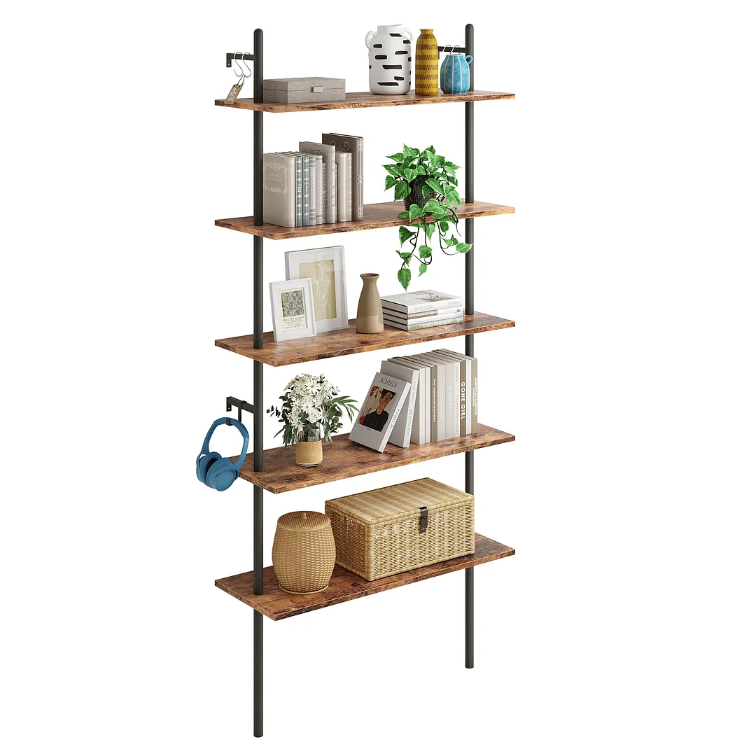 This 5-tier ladder shelf features a wall-mounted design that is perfect for home and office use. The wall-mounted bookshelf provides larger size storage space for your various storage needs. The modern wall-mounted shelf design gives a sense of refinement to many scenes, such as house, office, and cafe, which is a perfect addition.