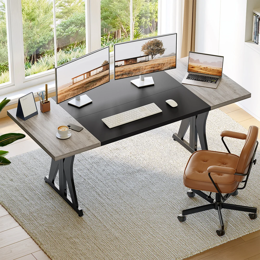 The Bestier 70-inch Executive Desk brings a Modern Farmhouse touch to any professional setting. Designed for both individual productivity and team collaboration, it serves as a robust standalone desk or an expandable Conference Room Table.