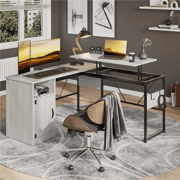 Bestier 95.2 inch large two person desk with lift-top allow you to easily go from sitting to standing while you work. And you can install the lift mechanism on the left or right according to your needs. The standing height can be raised by 9“, creating better posture for your home office activities, and helps reduce back & neck pain after siting for a long tim. With 1 open shelves and cabinet for easy access storage. This sit-stand desk is made from high quality P2 Particle Board with metal frame, making it a lasting and stunning addition to your home office.