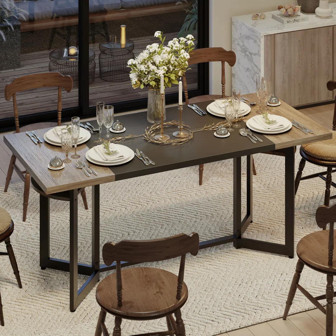 Sophisticated Design for Any Space: The elegant industrial design of this dining room table adds a touch of sophistication to any home. Its stylish appearance enhances your dining space’s aesthetic, making it a standout piece in any dining room or kitchen. This wood dining table effortlessly complements various interior styles.