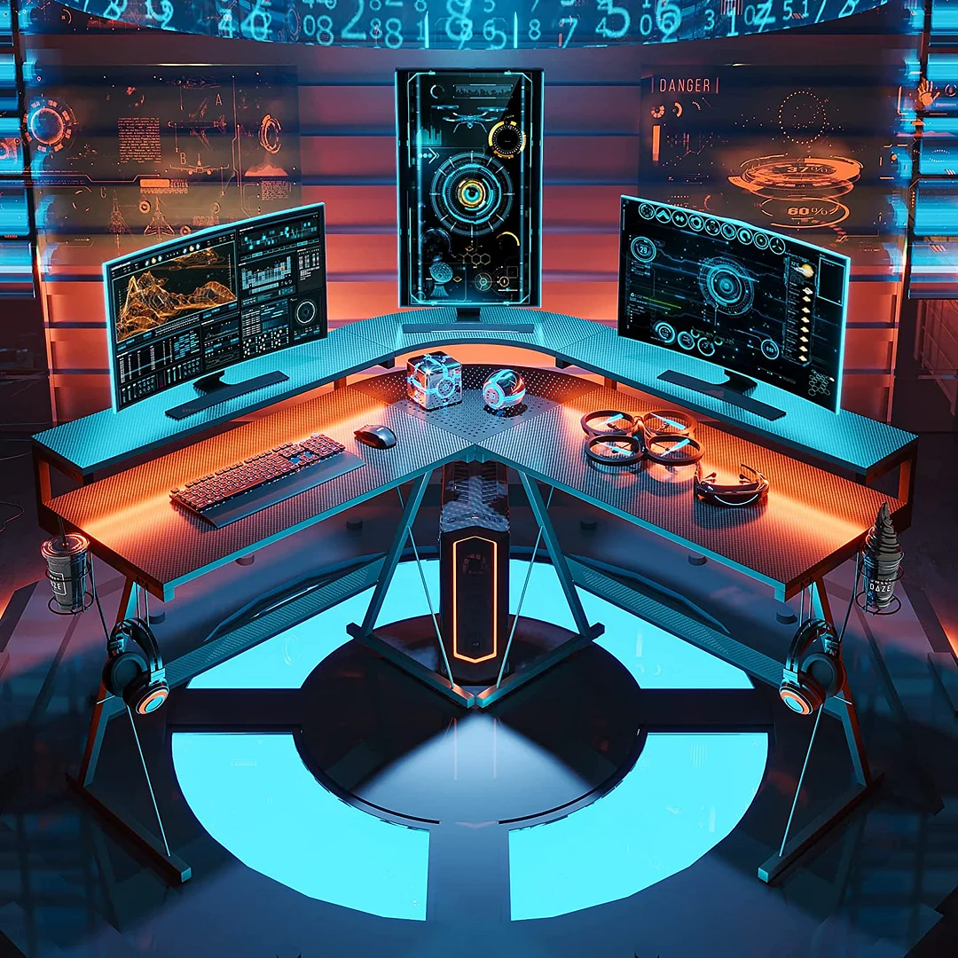 Full-Sized Monitor Shelf: The computer desk was equipped with full sized monitor stand riser to allow for more space to store your gaming gears like speakers and keep your one or more professional monitors at eye level to reduce head and neck fatigue.