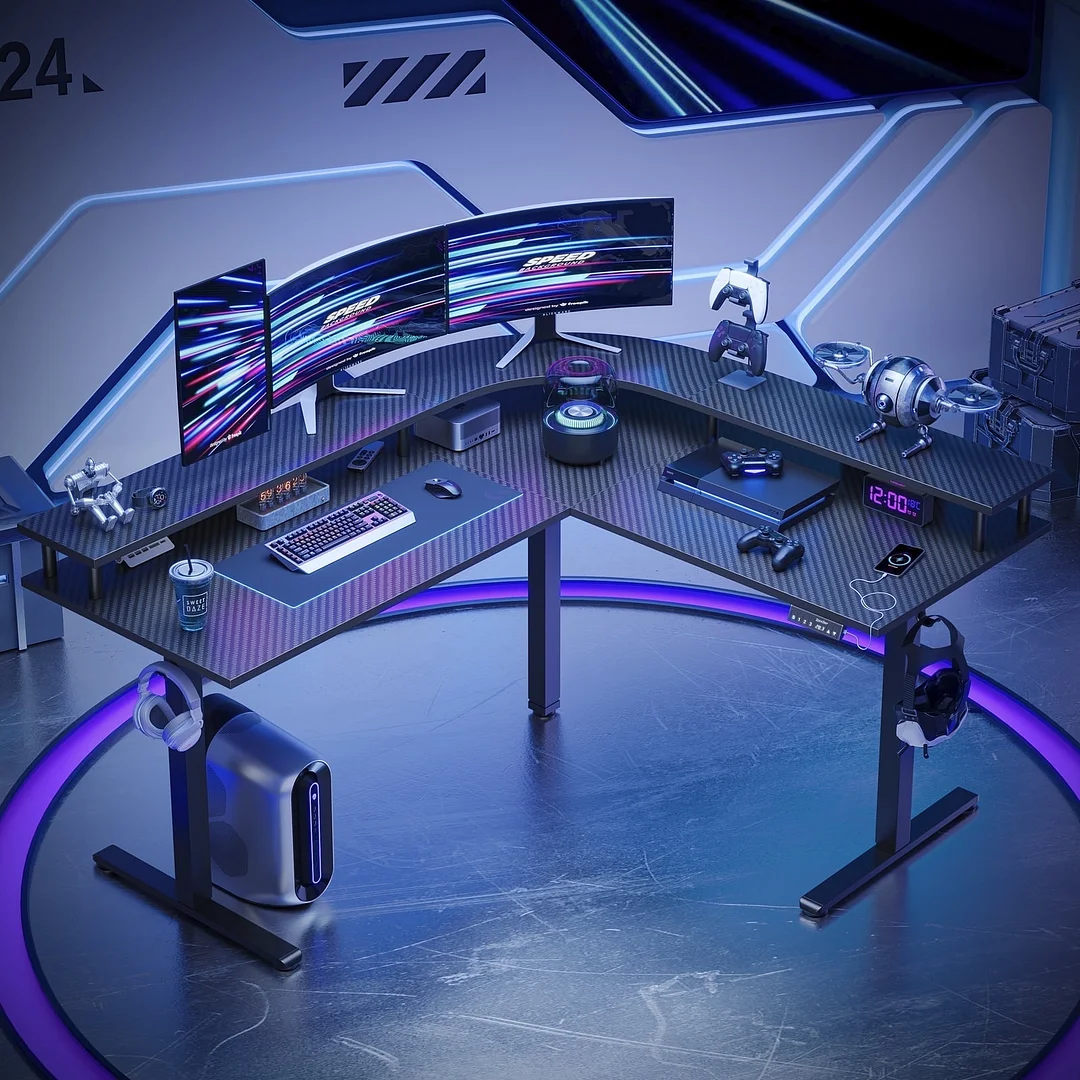 Dual Motors L Shaped Standing Desk:Equipped with dual rotating motors and a connecting charging wire, this stand up desk operates at a noise level of ≤55 db, ensuring ultimate stability and a smooth lifting operation, this L desk offers adjustable heights ranging from 28.3" to 46.45”. Certified by UL & FCC safety standards, this electric desk guarantees anti-collision technology and current protection functions.