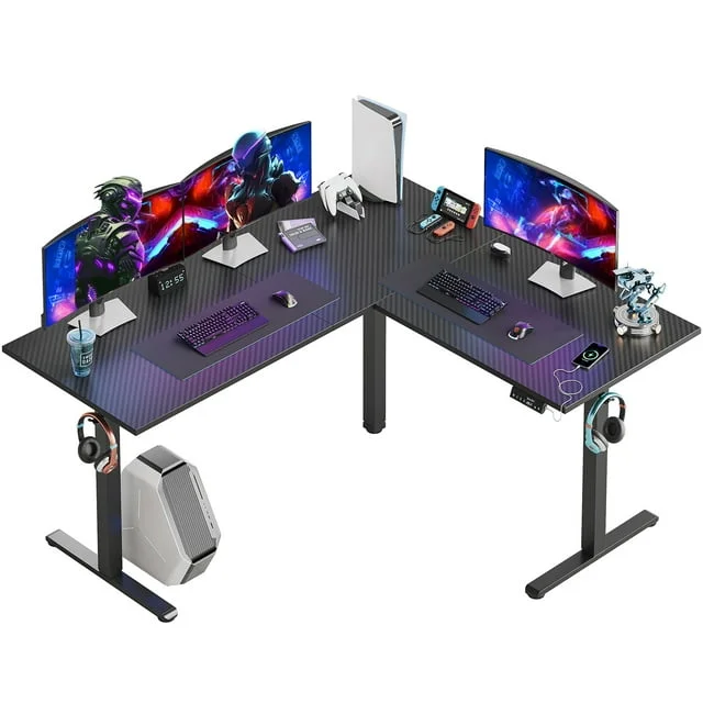 More Stable & Stylish Design: Experience lasting durability and chic design with our corner computer desk. Crafted with high-density commercial-grade particleboard and a robust steel frame, this L stand up desk ensures stability and smooth lifting. The carbon fiber texture adds a touch of gaming style, seamlessly matching a variety of gaming setups for an immersive experience.
