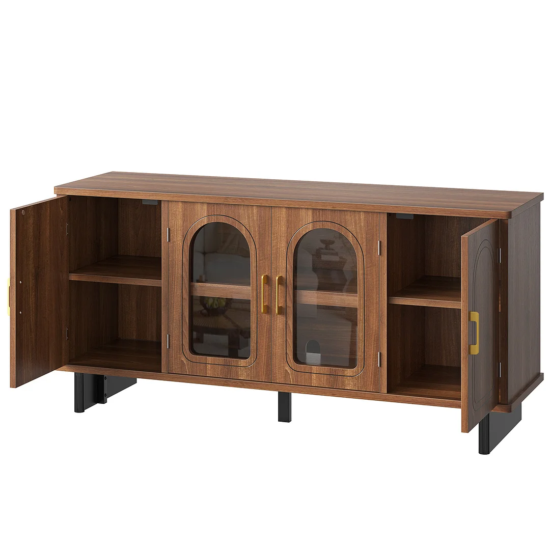 Elevate your space with this versatile tv stand, a seamless addition to your living room furniture that blends modern minimalism with timeless mid-century elegance. Its signature arched silhouette adds refined texture, fitting effortlessly with any home decor style.More than a sleek tv console, this piece doubles as a practical console table, compact entertainment center, and functional entertainment center with storage. It features dust-proof glass doors for decor display, two roomy hidden compartments to conceal clutter, height-adjustable shelves for flexible organization, and a built-in cable management system to tidy messy wires.