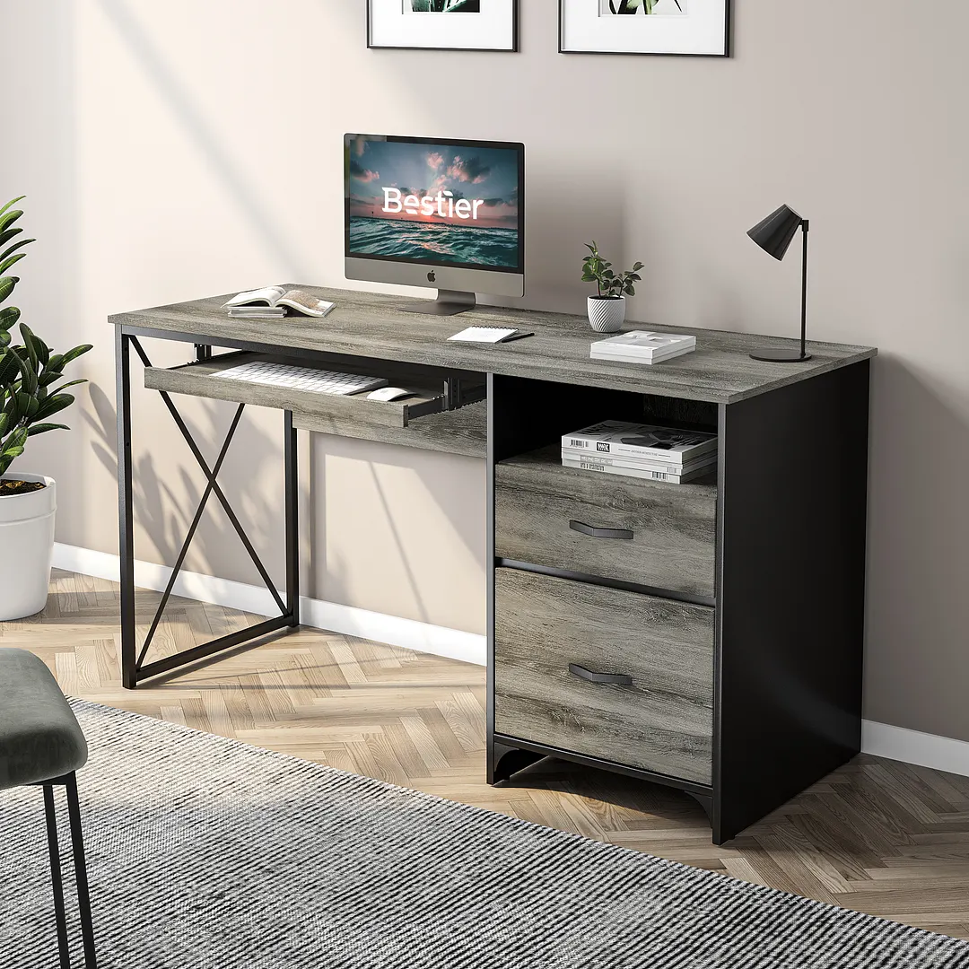 Bestier Office Computer Desk with Storage Drawers, 55" Writing Learning Computer Desk Workstation with Keyboard Tray for Home Office, Dark Gray Oak