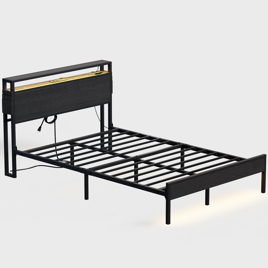 Storage Headboard with Charging Station:The bed frame comes with 2 storage shelves on the headboard that is perfect for putting books, tissue box, lamps, etc. With the built-in charging station: 2 outlets,1 USB ports and 1 typeC ports added for convenience, you can charge your phone or tablet without having to leave the comfort of your bed.