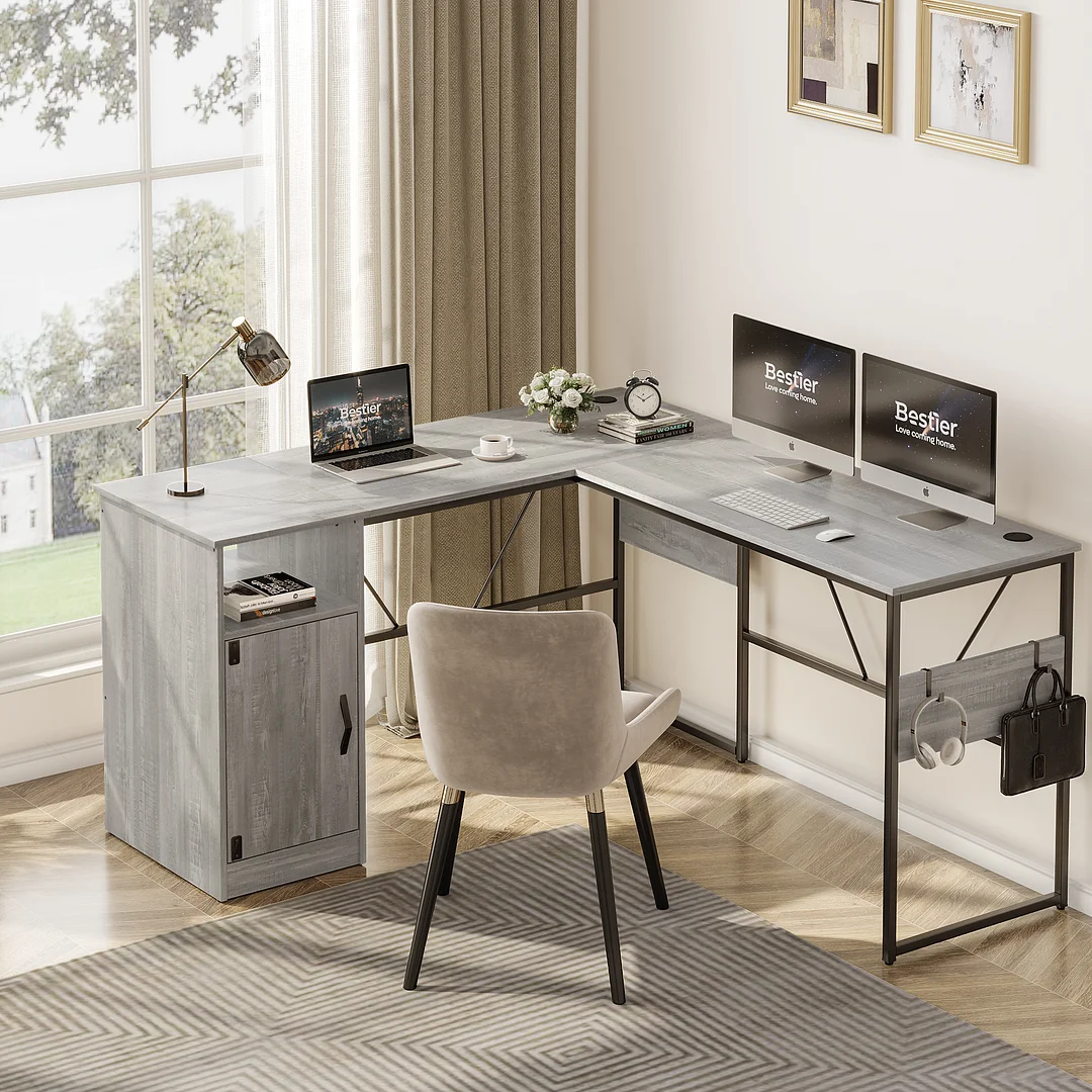 Extensive & Reversible: Spacious home office desk for 1 person but works for 2 without interference when in the vertical form. L-shaped design helps make full use of corners in a room. You can switch the cabinet to either of two sides as your wish, making sure your home office activities are efficient and convenient.
