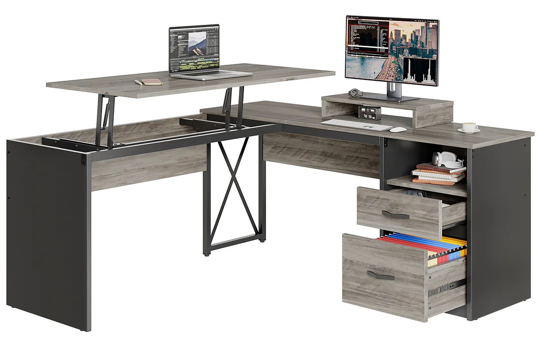 The standing height can be raised by 9', and the hydraulic air rod can be easily adjusted. The ergonomic built-in height-adjustable desktop meets the needs of the user's office/study environment where the user alternates between sitting and standing throughout the working day.